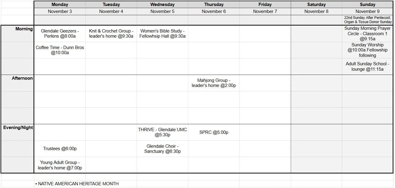 Church Happenings - Week of 11/4/25